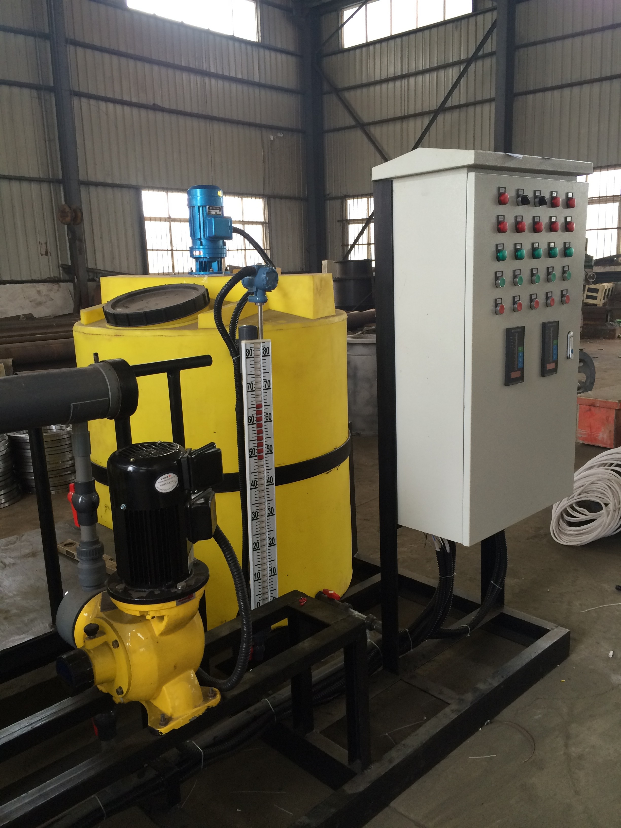 加藥過程可手動操作,也可通過PC機、磁翻板液位計、PH計、行程控制器、變頻器等各種電器、儀表、使加藥裝置成為機電一體化產(chǎn)品、實現(xiàn)自動控制。